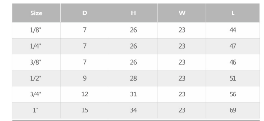 | Tamaño | 1/8"-1" |