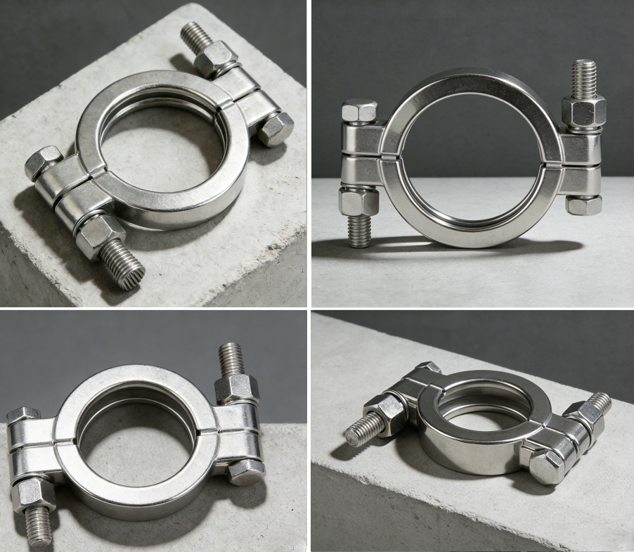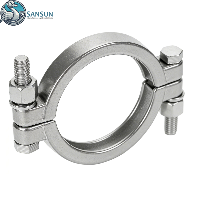 La triple abrazadera de alta presión Sansun con tuerca de acero inoxidable y sus accesorios cumplen con los estándares de higiene 3A de EE. UU., están hechos de acero inoxidable de grado sanitario, son robustos y duraderos, encajan perfectamente con manguitos de abrazadera, son resistentes a la presión y cumplen con los estándares ASME BPE, 3-A, DIN e ISO. Los tamaños varían desde 1/2 pulgada hasta 12 pulgadas de diámetro. Las abrazaderas de una sola aguja se utilizan ampliamente en las industrias de refrigeración líquida, alimentos y bebidas, cervecería y farmacéutica.