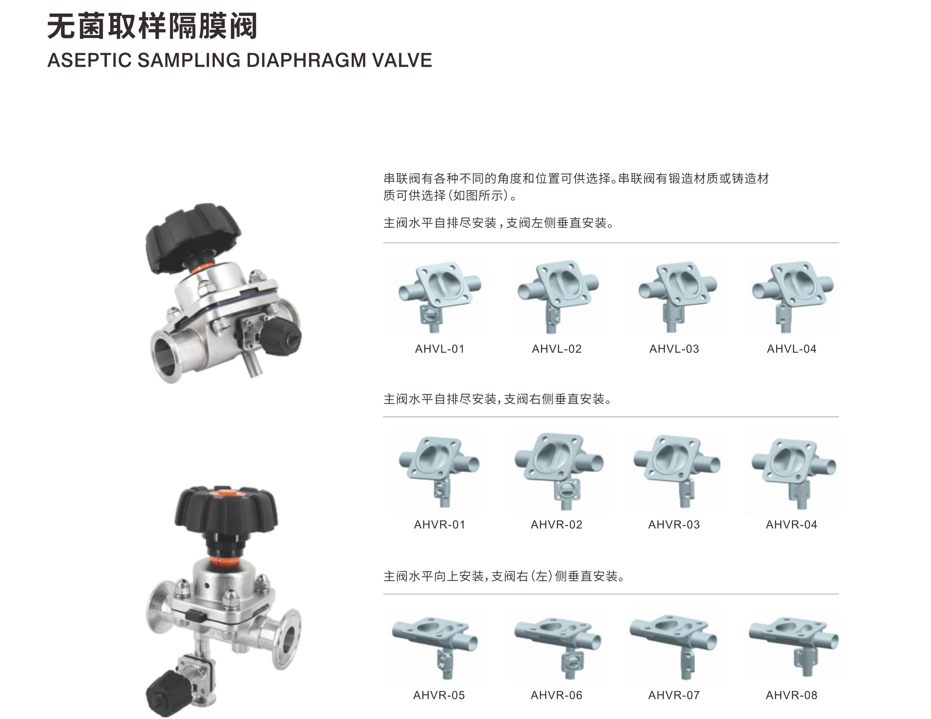 | Ámbito de aplicación: | Válvula de diafragma multipuerto con cuerpo forjado, diseñada por expertos para aplicaciones en las industrias de alimentos, bebidas, lácteos, cervecería y farmacéutica. Ofrece un rendimiento excepcional tanto en regulación de flujo como en servicio de encendido/apagado. |